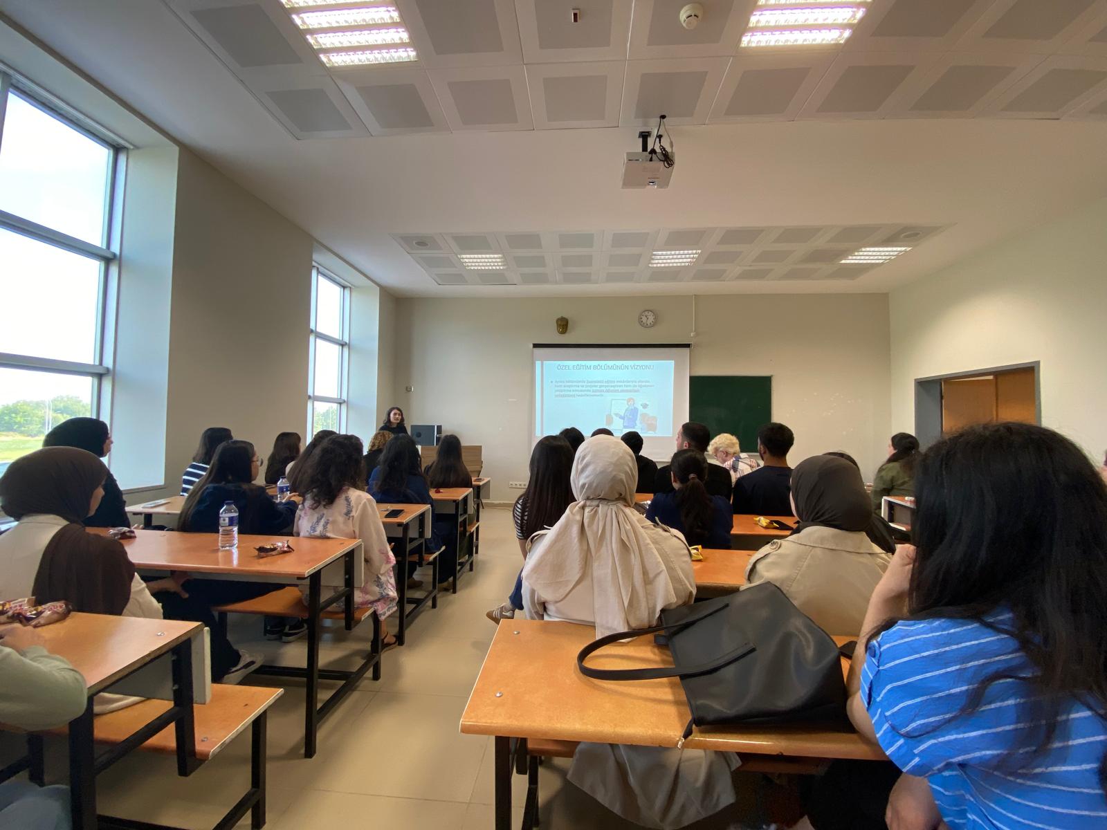 26 Eylül 2025 tarihinde ise bölümümüz tarafından 1. sınıf öğrencilerimizin bölümümüzü tanıması amacıyla Araştırma Görevlisi Asuman Sağlam Ak’ın sunumunu yaptığı Özel Eğitim Bölümü oryantasyon toplantısı gerçekleştirilmiştir. Toplantı sırasında açılış konuşması, bölüm tanıtım sunumu, bölümümüz hocalarının kısaca kendini tanıtması, bölümümüz öğrencilerinin faaliyet gösterdiği Toplumsal Farkındalık Kulübü ve kulüp çalışmalarının tanıtımı ve öğrencilerimizin sorularının cevaplanması gibi konular yer almıştır. Katılan tüm öğrencilerimize teşekkür eder, başarılar dileriz.